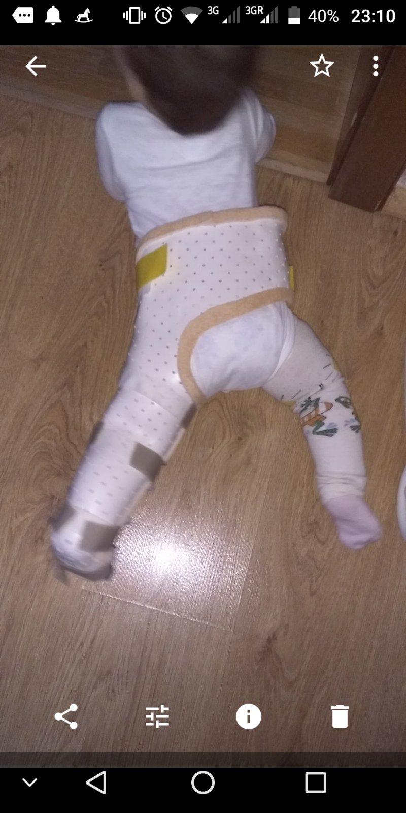 Ahojte. Pisala som tu prednedavnom. Tak sme zmenili lekara a dal nam Lorrach ortezu. Mate stym skusenosti? Nejake rady, tipy... Citala som ze moze dojst k dekubitom pod kolienkami, aj tie popruhy na remenach su velmi napevno bojim sa ze ju to bude tlacit. Mame to nosit 22-23hod. denne. Dufam ze sa to uz bude zlepsovat.