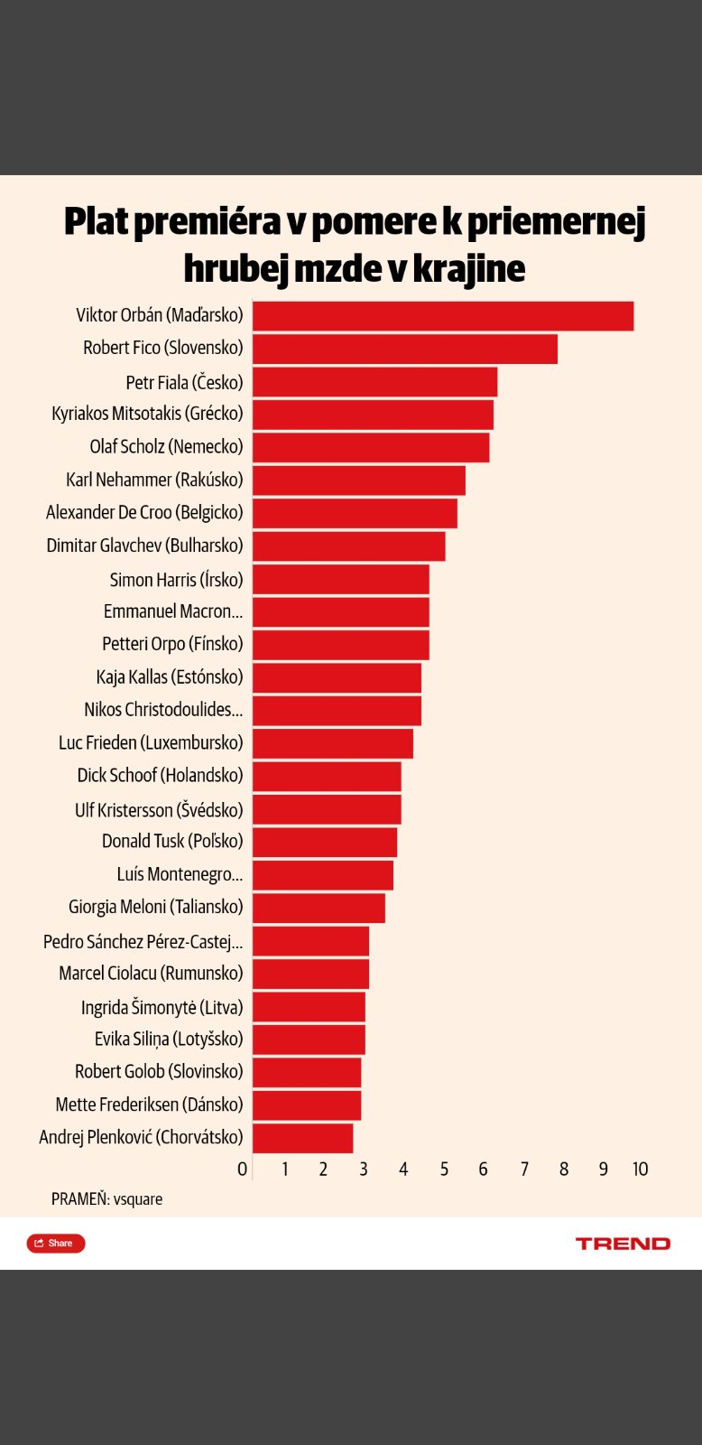 Ja viem, ze pomaly uz nie je dna, co by tu nepribudla nova politicka tema, no predsa..dnes na mna vyskocili tieto rebricky. Su z jula 2024, asi ich vela z vas videlo. Mne neskutocne zdvihli tlak :/ pripada vam primerane, aby Fico zarabal takmer 8krat!!! tolko, co priemerny Slovak? Co je druhy najvyssi pomer po Madarsku v ramci EU? Lebo mne nie. Jeho plat je vyse 11500e. Ministri maju plat viac ako 8600e. Vladni poslanci vyse 6600e. Členovia vlády okrem toho počas výkonu funkcie majú právo bezplatne užívať primerane vybavený byt a služobné auto. Ludia, co sympatizujete s vladou, preco, preco vam neprekaza, ako nas a nase deti zdieraju? Pride vam to ohodnotenie primerane, hlavne ked treba konsolidovat? Zo statneho rozpoctu toto navysenie pre premiera a ministrov zobralo 2miliony eur iba za tento rok.