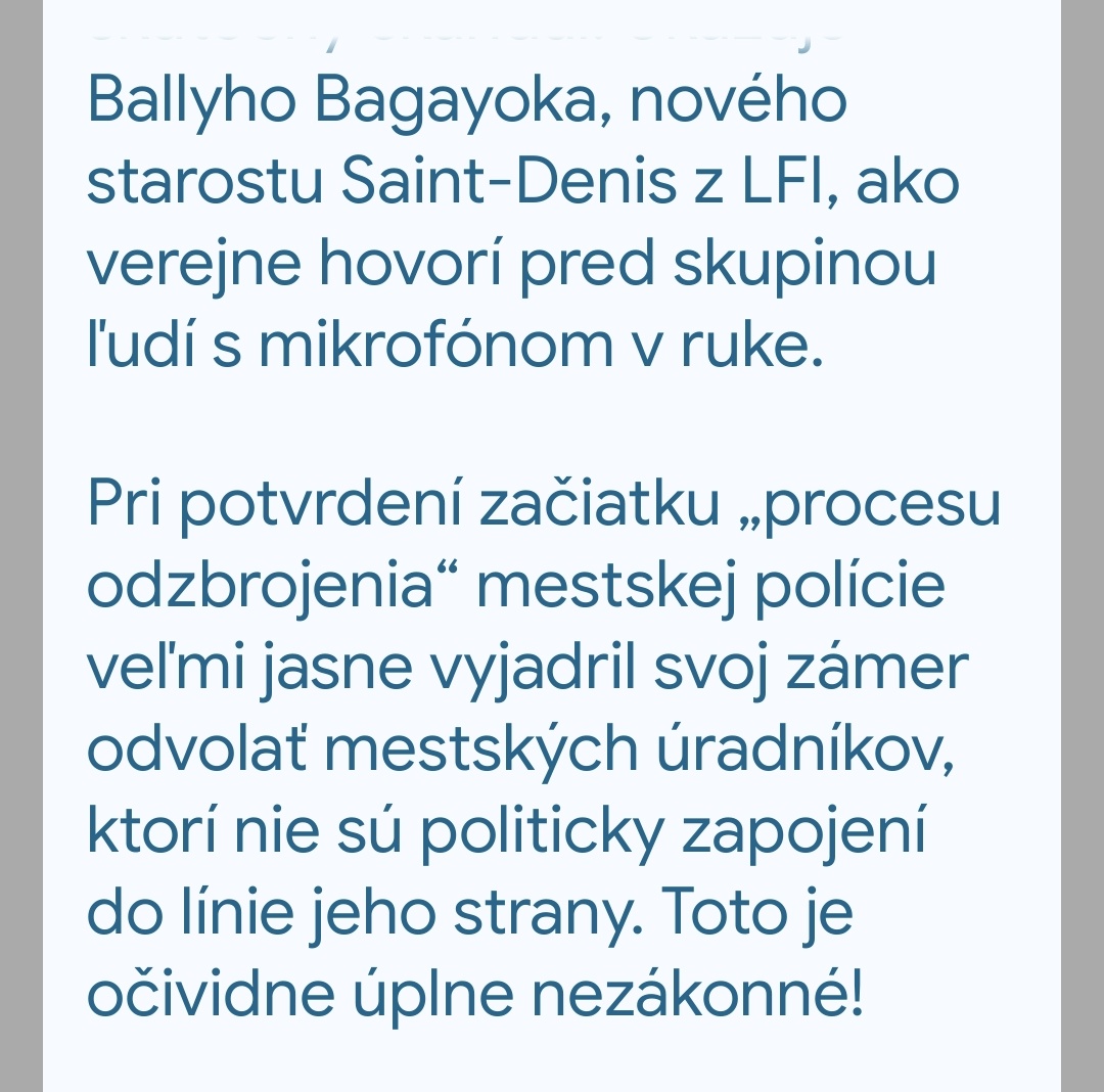 @anonym_autor V článku sa uvádza "he expressed very clearly his desire to exclude municipal agents who would not be politically aligned with his line", čo je teda dosť ďaleko od odzbrojenia polície. Zároveň článok jasne uvádza, že ide o nelegálne požiadavky. Ale aspoň v priamom prenose vidíme, ako vznikajú dezinformácie.