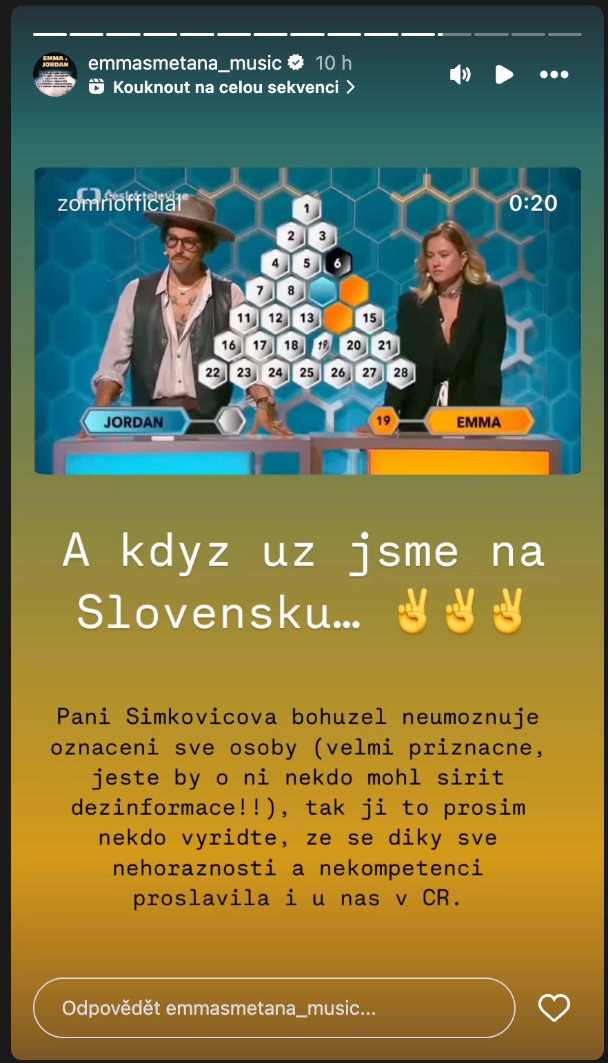 @viestta súťažiaca to myslela ironicky. Ona že je vyštudovaná, vzdelaná, študovala aj v zahraničí, robí pre DVTV. Tiež som sa najskôr zľakla, tak som si o nej zisťovala viac, lebo nepôsobila na mňa ako fanynka tej našej kreatúry