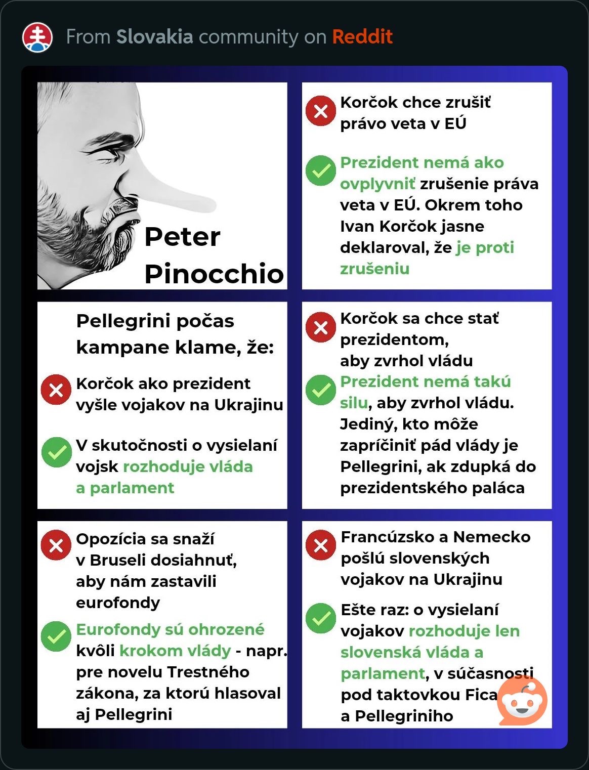 Videla som tu viacero diskusií, kde sa autor anonymne pýtal, prečo ľudia volia Korčoka a následne mu tam robil antikampaň. Mňa len naozaj úprimne zaujíma, tí čo idete voliť Pellegriniho, PREČO? 🫣
