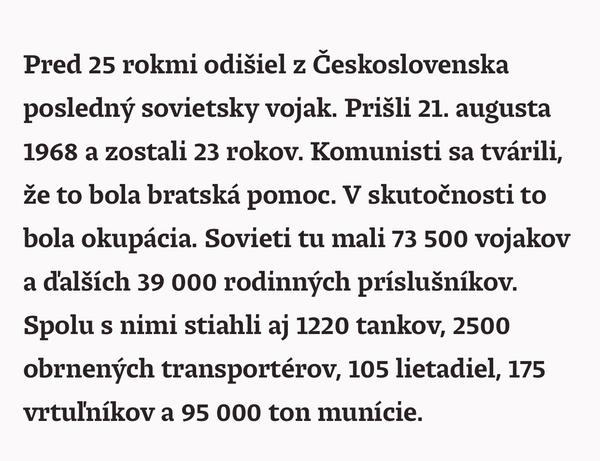 @galioska boli tu Sovieti, to neznamená Rusi. Do vymyslenéhobcelku ako bol Sovietsky zväz patrili aj národy ako Ukrajinci, pobaltské národy, Arméni, Kazachstan o a tak ďalej. Navyše do Československa v 68. dorazili všetci členovia Varšavskej zmluvy okrem Rumunov. Takže zbytočne mieriš svoj hnev len na Rusov. Nehovoriac už o tom, že v ZSSR Rusi reálne áno nevládli, ale iný národ tam mal hlavné slovo 😉