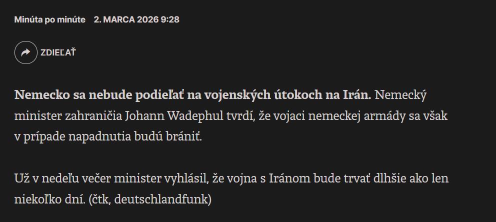 Práve čítam, že Nemecko zvažuje, že vstupi do voj. konfliktu proti Iranu (startitup). Čo to potom bude znamenať pre nás (rozumej zvyšok sveta).