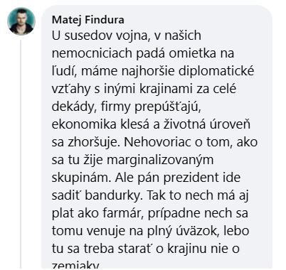 Urcite nema sadit krumple. Je prezident ma robit politiku, reprezentovat krajinu, nie hrat sa na gazdu. Na povolania sa hraju male deti.
