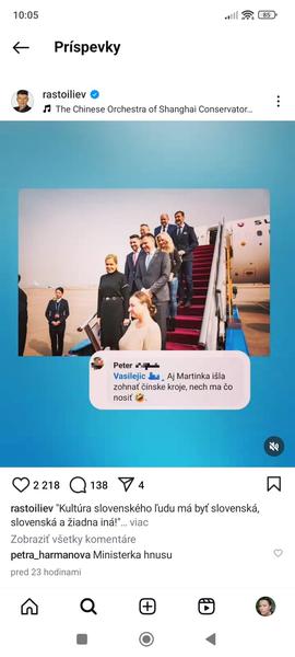 @tetapetra aha, vdaka. Vsak kočka sla zaposobit na Cinanov 😉 Ozdoba muzskeho kolektivu. Nerozumiem, ake kulturne rokovania tam mala, co sla reprezentovat. V usa sa aspon stretla s dcerou a nejakou slovenskou komunitou. V Cine si sla brat priklad z cinskeho muru? Alebo sa vsetci sli osobne predstavit? Obrovska delegacia na taku malu krajinu. Alebo potrebovali zaplnit statny special, ako na vylet na futbal? Ci leteli obycajnou linkou? Skuska Ba - Peking?