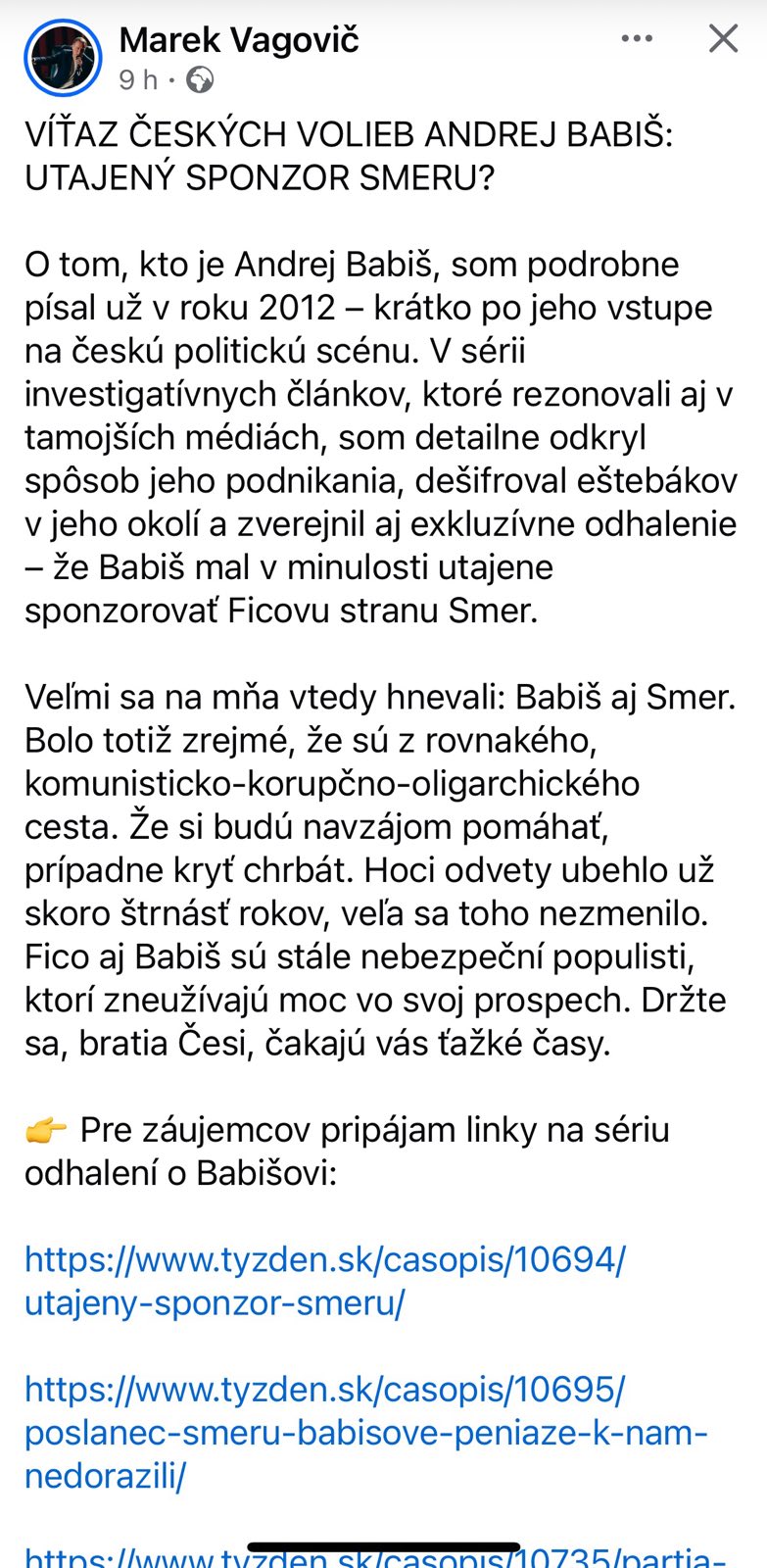 Myslim si, že ľudia v ČR asi dobre vedia, prečo si zvolili Babiša a vyhral teda s pekným náskokom.