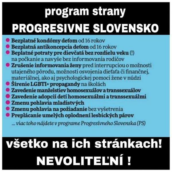 @panda21 v skutocnosti to bude este horsie, ved vidis len tu, kolko ludi ma smrtelny strach z PSka, ze ked sa dostanu do vlady, gayovia v ruzovych kosielkach nam zacnu klopat na dvere a brat nam deti a menit ich identitu na psov.. maju vypnuty mozog, ovlada ich len strach.. to iste si pamatam s Caputovou v 2019, ze ked sa stane prezidentkou, zacnu nam sem vozit migrantov , arcibiskup povedal, ze volit ju je tazky hriech a neviem co vsetko este.. zadubeni ludia a strach z neznameho..