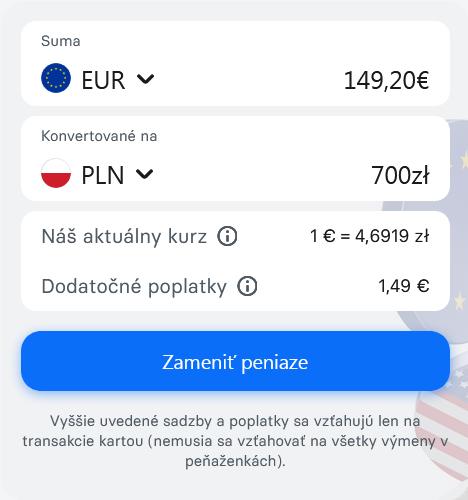 ak máš kartu MC debit jeden zlotý stojí 0.2197 EUR takže 700 PLN je za 153,79€