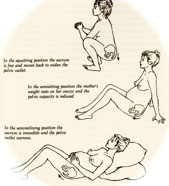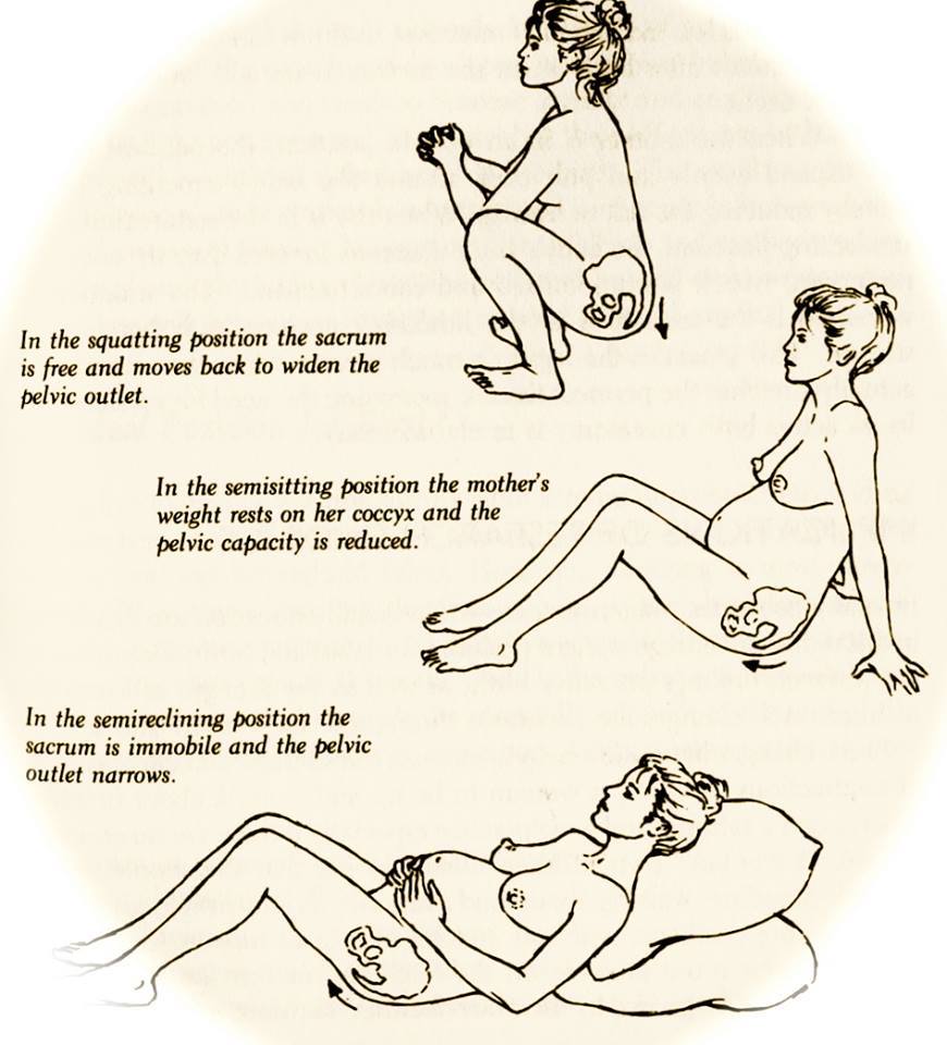 Ked hovoríš o polohakch pri pôrode, pridavam obrazok toho ako vyzera panva pri jednotlivych polochach 1. V dřepu je křížová kost volná a pohybuje se směrem dozadu k rozšíření pánevního prostoru. 2. V polosedě je matčina váha na kostrči a pánevní prostor je zmenšen. 3. V pololeže je křížová kost znehybněna a pánevní prostor je zúžen.