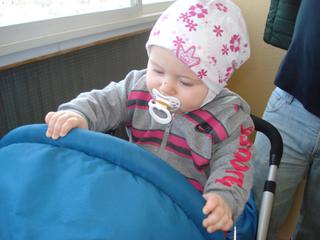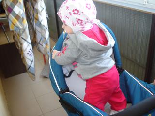 No mala je dnes ako cert...Pred chvilkou ju dal manzel na balkon, ze uspat v kociariku (este hlbokom) a ona potvora sa v nom postavila..Som myslela, ze ma porazi, ked som to zbadala...Ale u ze je priputana v sportaku a spi (po pol hodinovom boji ), vsak ved novy kociar tak musela preskumat vsetky tycky....Ked vstane, tak vyrazame pretekat.