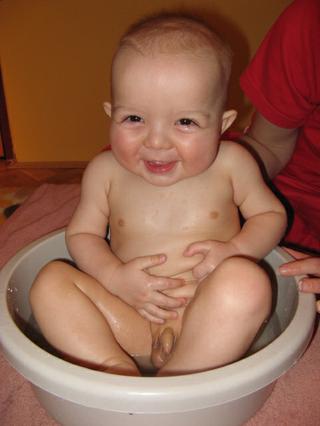 no kupelnu mam za sebou, ufff. Ja viem,ze jej je fuk ci je bordel, no mne uz zacina vadit a kde pozriem sama hracka, podbradnik,lyzicka...No moja sa nema vecer na koho nalepit, akurat na moju mamu, no aj ta ju bavi a zaujima asi 10 min. cize ako vsetky hracky-z Olivie sa stala prisavka. Pridam fotecku zo spenatu, aspon to skusim
