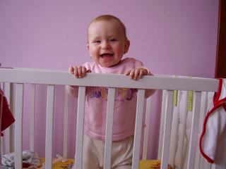 no, nasa Hanka tiez uz stoji, dokonca sa chyti pavuka a chodi po celom byte. v pavuku nechce byt 😀 , dokonca sa uz parkrat pustila, ale vzdy spadne. ale uz vie aspon padat 😀