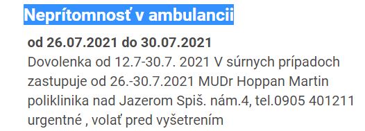 @belllinka toto iste naslo aj mne, viem pouzivat google, lenze je to tam dost nejako blbo napisane , lebo pise ze dovolenka od 26-30 ale pod tym ze od 12-30.7. a uz vyse tyzdna sa tam neviem dovolat aj keby dovolenka bola az od 26.7.