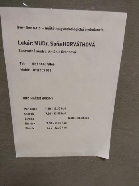 Kde ordinuje gynekologička MUDr. Soňa Horváthová?