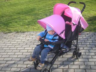 aj na MK som ho nasla jedna pani predava ale ja ho mam ani nie za polovicu uplne novy, s fusakmi, plastenkou, super sa sklada, lebo napr. neviem ako by sme sli na vylet napr. do Bojnic chceme ist klasicky kociar mame tiez ale ten a golfky pre Branka kedze by este nevladal do kufra nevtrepem, vpredu je mala vo vajicku s MM vzadu ja s Brankom v autosedacke takze nemozne dat do klasickeho auta dva kociky takze toto je super riesienie 😉