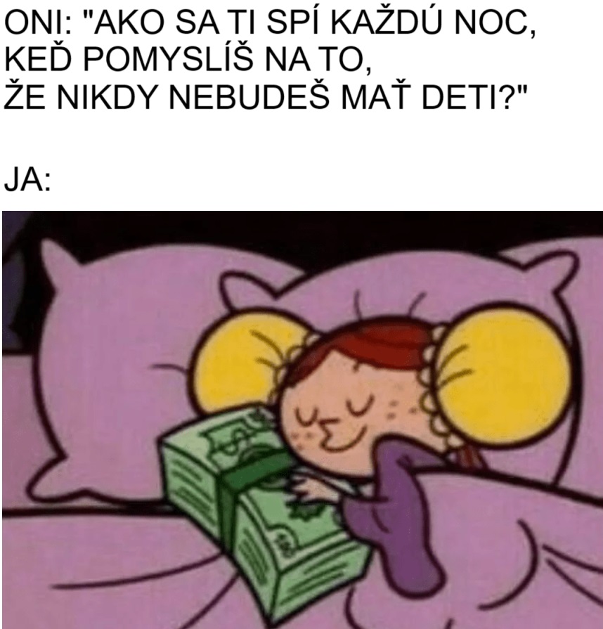 Chodime do prace, kt nas bavi a dobre uzivi (ziadne otrocenie kt opisujes 🙈), cestujeme a zijeme fajn, lebo vedome na tom pracujeme. Predtym ako sme mali deti, tak sme si zabezpecili zazemie.