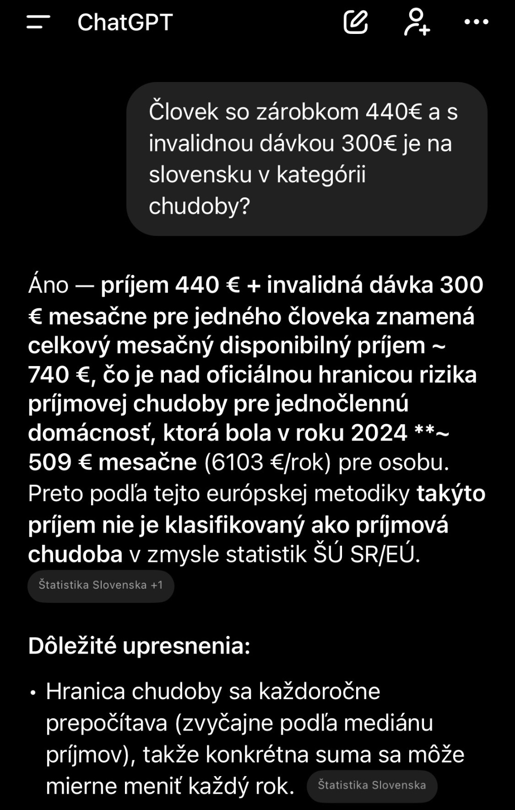 @unbeholfen ty na vsetko potrebujes AI? mas peniaze tak si rozmysli kde ich das. Zeby si zasa nedaval diskusiu aky si chudobny. 740e odrataj tusim 120 co si vravel ze platis za byt je 620e. To su super peniaze. Aj ked das 120 na ostatne vydavky je to 500e to mas 100e na tyzden cca. To sa da v pohode najest NORMALNE a ne žrať blbosti