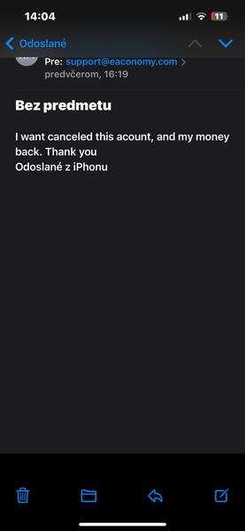 @mia2525 napiš im takýto mail. Peniaze ti vrátia na účet do 3 dni.. na mail: support@eaconomy.com