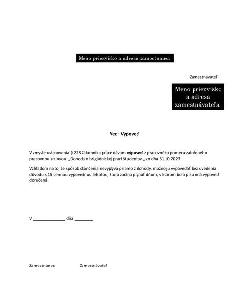 Ano...len si kukni ci v DoBPS skutocne nemas uvedeny dohodnuty spodob vypovede. A vynechaj v duhom riadku to "zalozeneho pracovnou zmluvou" pis rovno "zalozeneho Dohodou o brigadnickej praci studenta"......atd.
