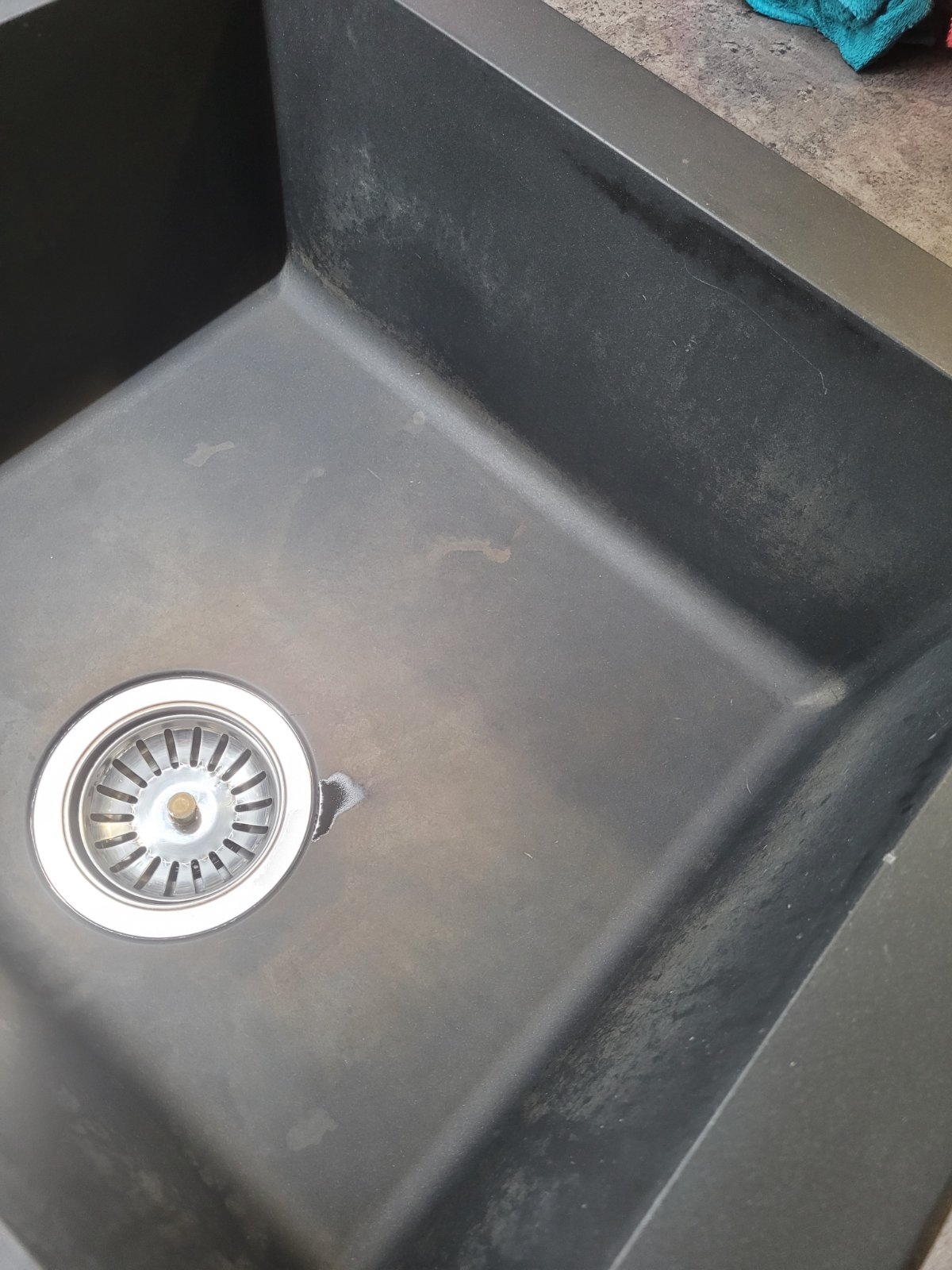 toto uz asi nicim, skor mi pride, ze to uz niektory z toho mnozstva produktov poskodil....ja mam sice inu znacku (Blanco) ale tiez tmavy a cistim pripravkom na riad, sanitolom a parkrat som aj pulirapid pouzila ked bolo vela kamena a veru je stale ako novy....