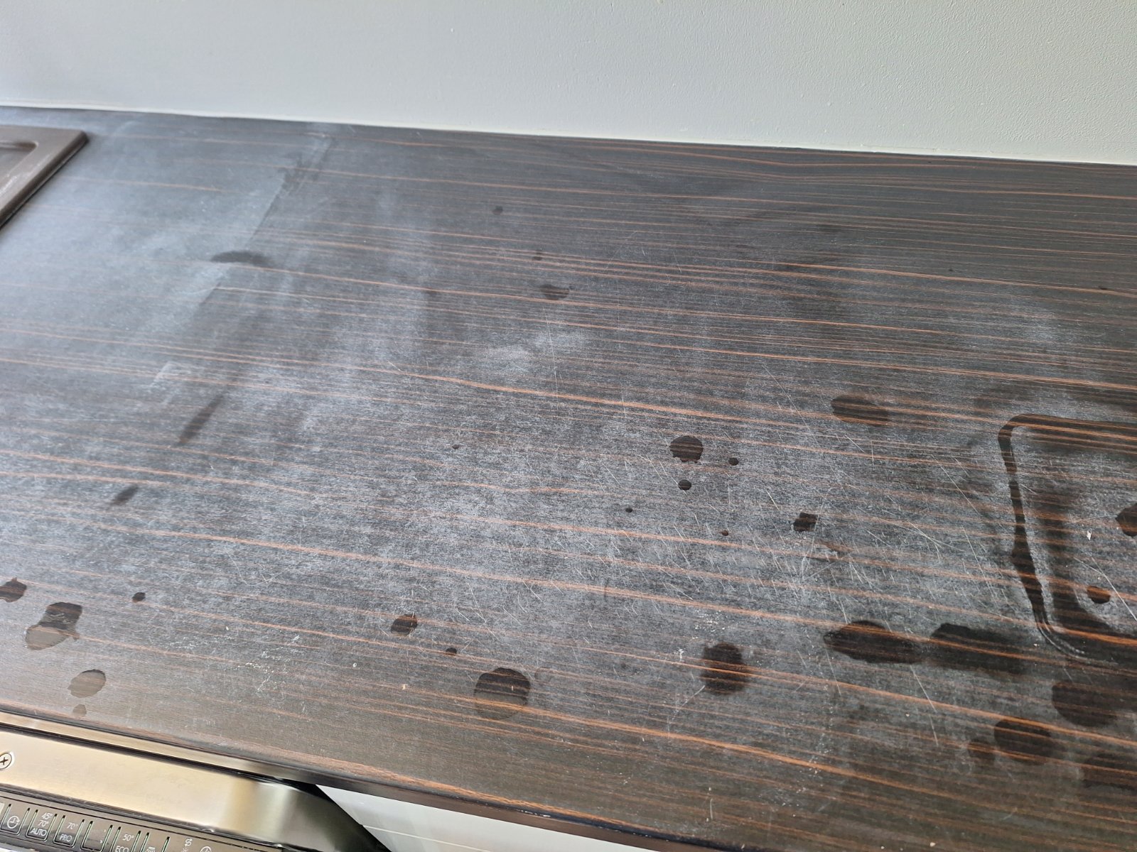 Ta doska ma zodraty povrch, to nicim nevycistis. Natri to olejom, aspon sa to zjednoti