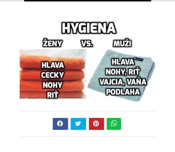 Tak to teda čumím ako sa zase potvrdili extra vysoké OCD hygienické štandardy koníka. Mám 1 osušku na pre seba a 1 uterák na ruky pri umývadle, ktorý používame obaja s chlapom. Nechápem, ak si do toho utierame čisté telo a ruky tak načo to je dobré mať ich toľko? A ešte sa stavím že by sa našli ženy ktoré ich perú dobre že nie po 1 použití tých 5 uterákov ktoré majú.