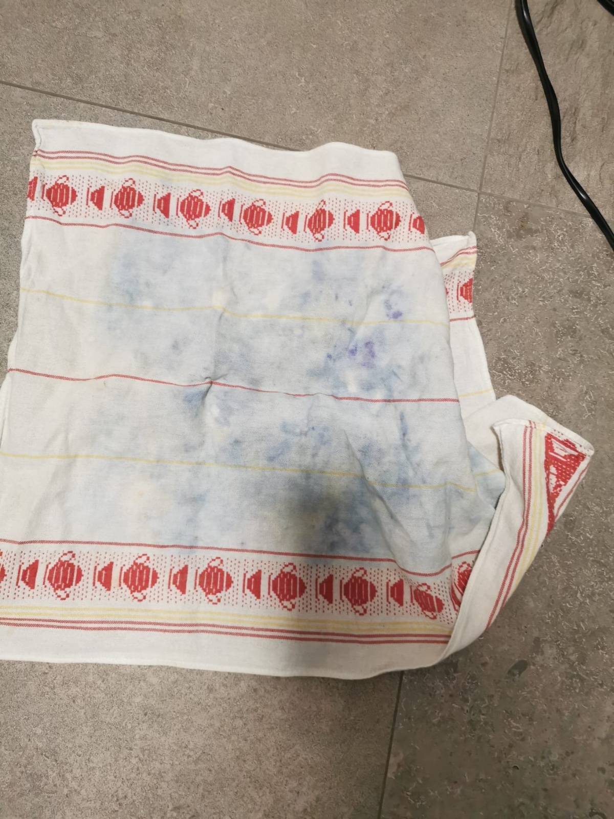 Takze, vytiahla som utierku pranu v pôvodnom geli (Ariel) a (zatiaľ) na nej žiadne fľaky nie sú.