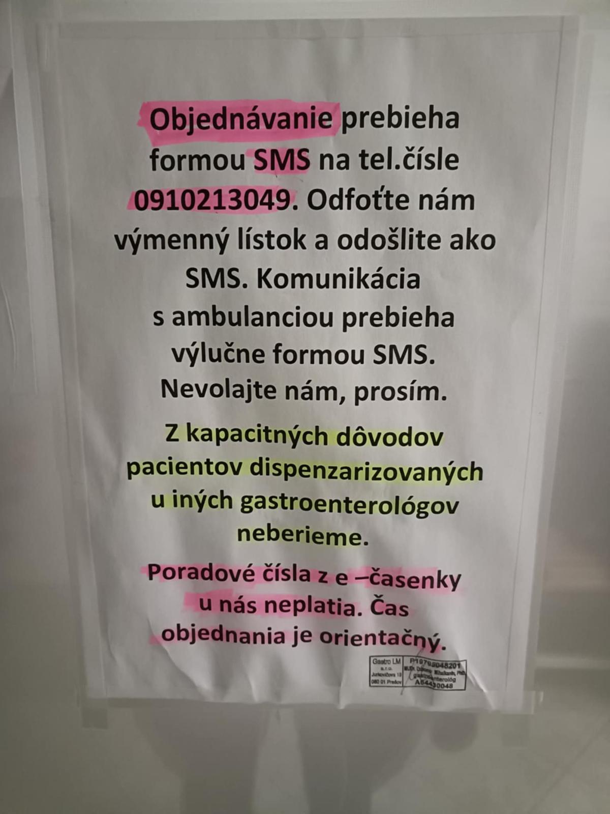 Telefón nezdvíhaju vôbec, môžeš napísať sms a skúsiť sa objednať aj cez sms, ale ten email je lepší, lebo to vedia podľa priloženého výmenného lístka vyhodnotiť a dať termín. Sú tam dvaja lekári - Dr. Mihalkanin a Dr. Binder.
