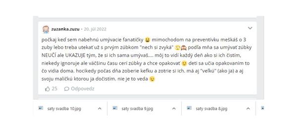 Super dakujem za tipy a skusenosti. Byva to frustrujuce niekedy, lebo mu chcem dobre. Este mi napadlo ako byvaju take hracky napr krokodil s otvorenymi ustami a vidno mu zuby, ze si to zaobstaram a kefkou mu budem ukazovat ako cistit krokovi zubky. Hrou. Nech skusi aj on. Mozno taka pozitivna asociacia mu asom vznikne. A ked nepomoze ani to tak asi fakt nasilu. Kazdopadne dakujem