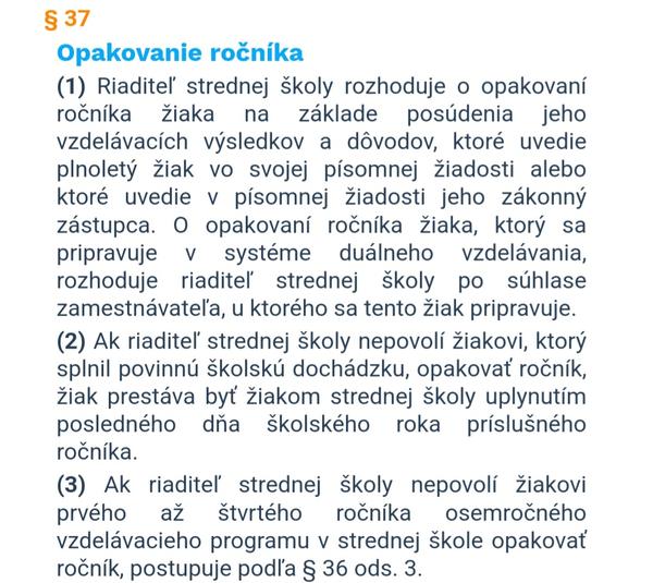 Fiha, zo zakona je vobec mozne nieco taketo urobit? Odmietnut vzdelanie, ked uz tam bol raz prijaty? Ked niekto prepadne vznika riaditelovi pravo na odmietnutie opakovania rocnika?