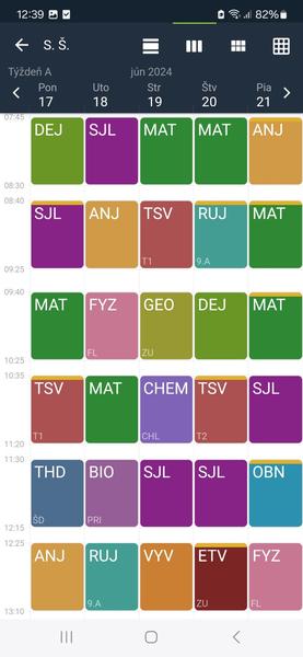 Moj este nema rozvrh, lebo budu v novej budove a začnu sa ucit az 9.9. Prvy tyzden maju Očap teoreticku cast a aj praktickú, ale v 8 rocniku mali dejepis 1 hodinu