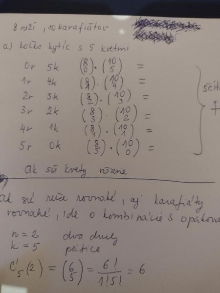 úloha 5a, a 5b sa mi vôbec nezdá. ale zadanie nekonkretizuje, či sú ruže rovnaké a karafiáty tiež alebo sú rôznofarebné :(