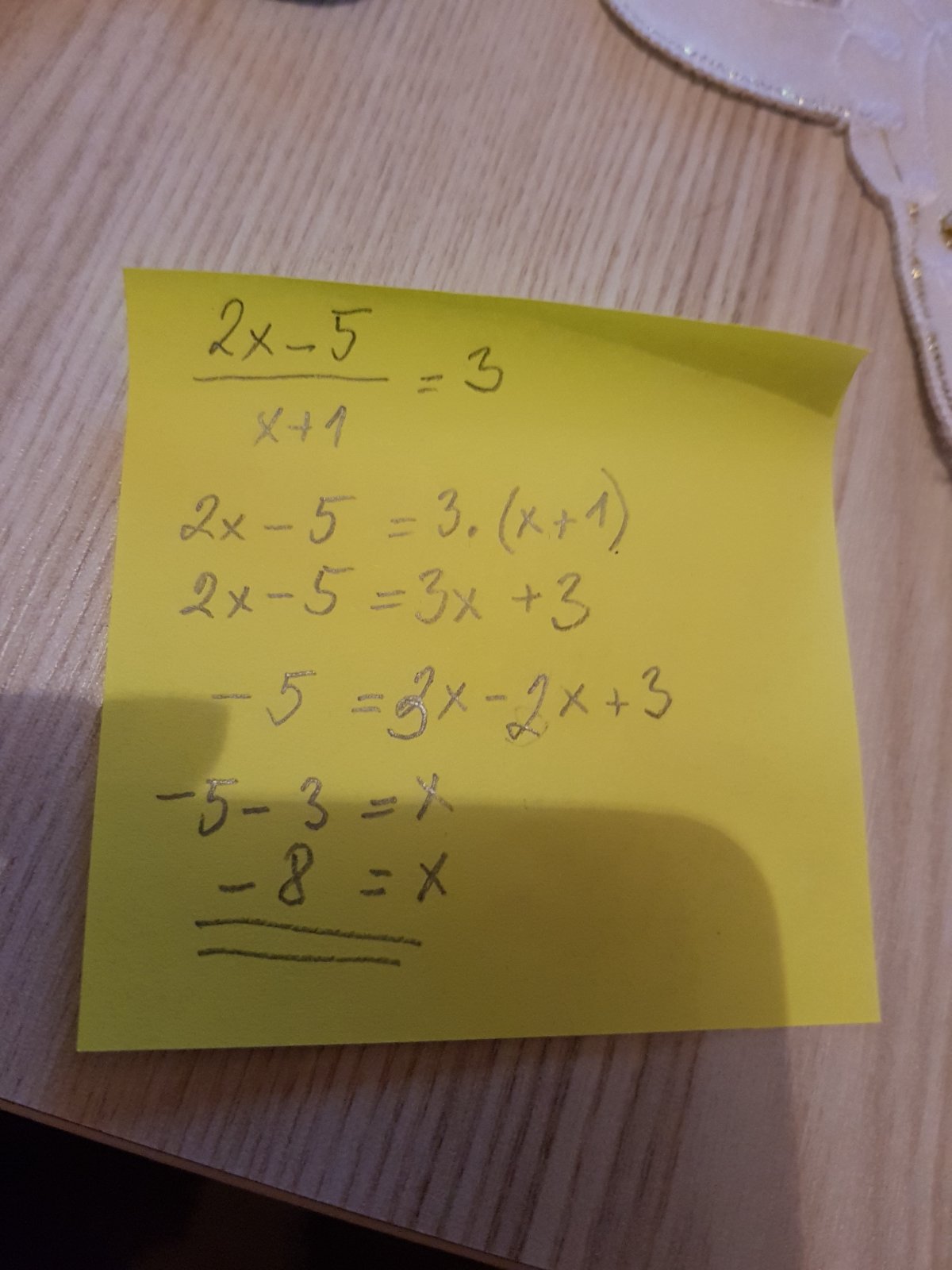 @panelacikova ja už to chápem, len som bola zmätená z toho, že x mi vyšlo - 8, lebo som nevedela, že mám dať 3x-11,čize, ako ste mi písali 3×(-8)-11 čiže tých - 24-11=-35