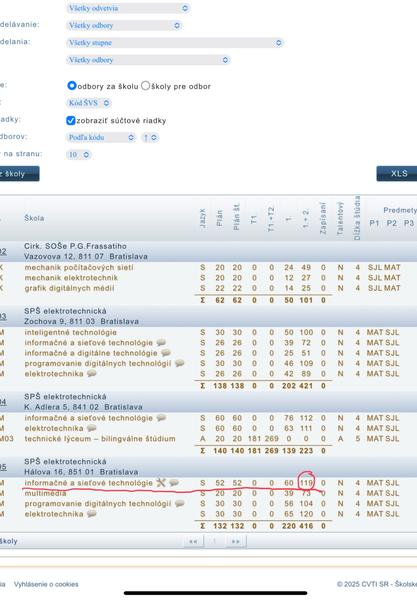 @simoli no neviem, co mi to tak zle rozkliklo, zadala som len sietove a informacne technologie, strasna stranka ako zo stredoveku, ak je to tak 119 spolu a 52 beru, tak to da🙂 To technicke lyceum bilingvalne tam sa hlasi ako talentovu v pondelok skusky, na Adlerke, to neda☹ 269 vcera bolo menej a beru 20.Jemu ide anglictina velmi. Ale nevadi staci nam aj Halova. to ste ma potesili. Hned po monitore mu to poviem, bude menej v strese. Mal aj same jednotky aj sutaz v Aj, juj dakujem velmi pekne, drzim palce na monitor .Pekny den prajem, potesili ste ma.