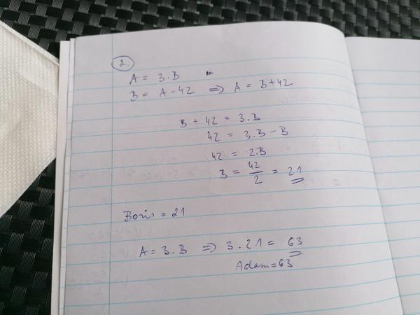 2) Adam má 3 krát viac eur ako Boris. Boris má o 42 € menej ako Adam. Koľko € má každý z nich?