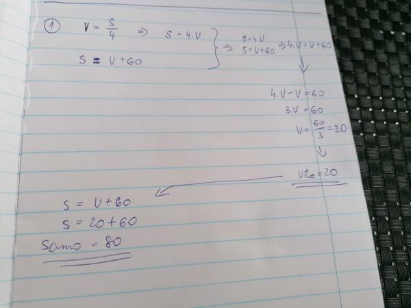 1) Vilo má 4-krát menej kartičiek ako Samo. Samo má o 60 kartičiek viac ako Vilo. Koľko kartičiek má každý z nich?