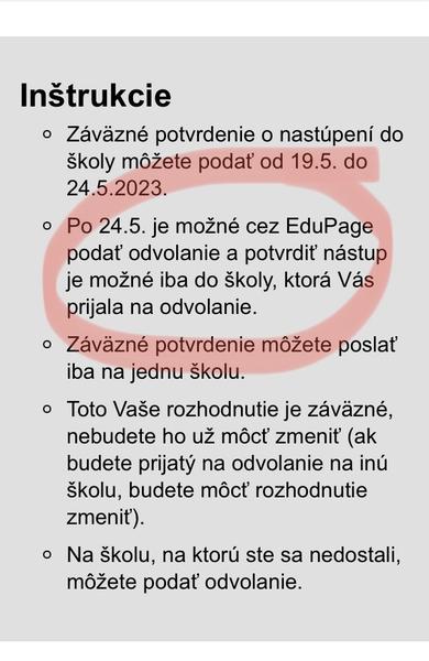 Ja som posielala dnes, lebo take boli instrukcie zo skoly. Ze az ked dostaneme pisomne rozhodnutie, tak sa mozeme odvolat. Od 19.-24.5. sa mali vyjadrit prijati , ci nastupia, od 25.5. sa posielali odvolania. Ale vidim ze som Asi posledna, vsetci tomu maju za sebou 🤦🏻♀️