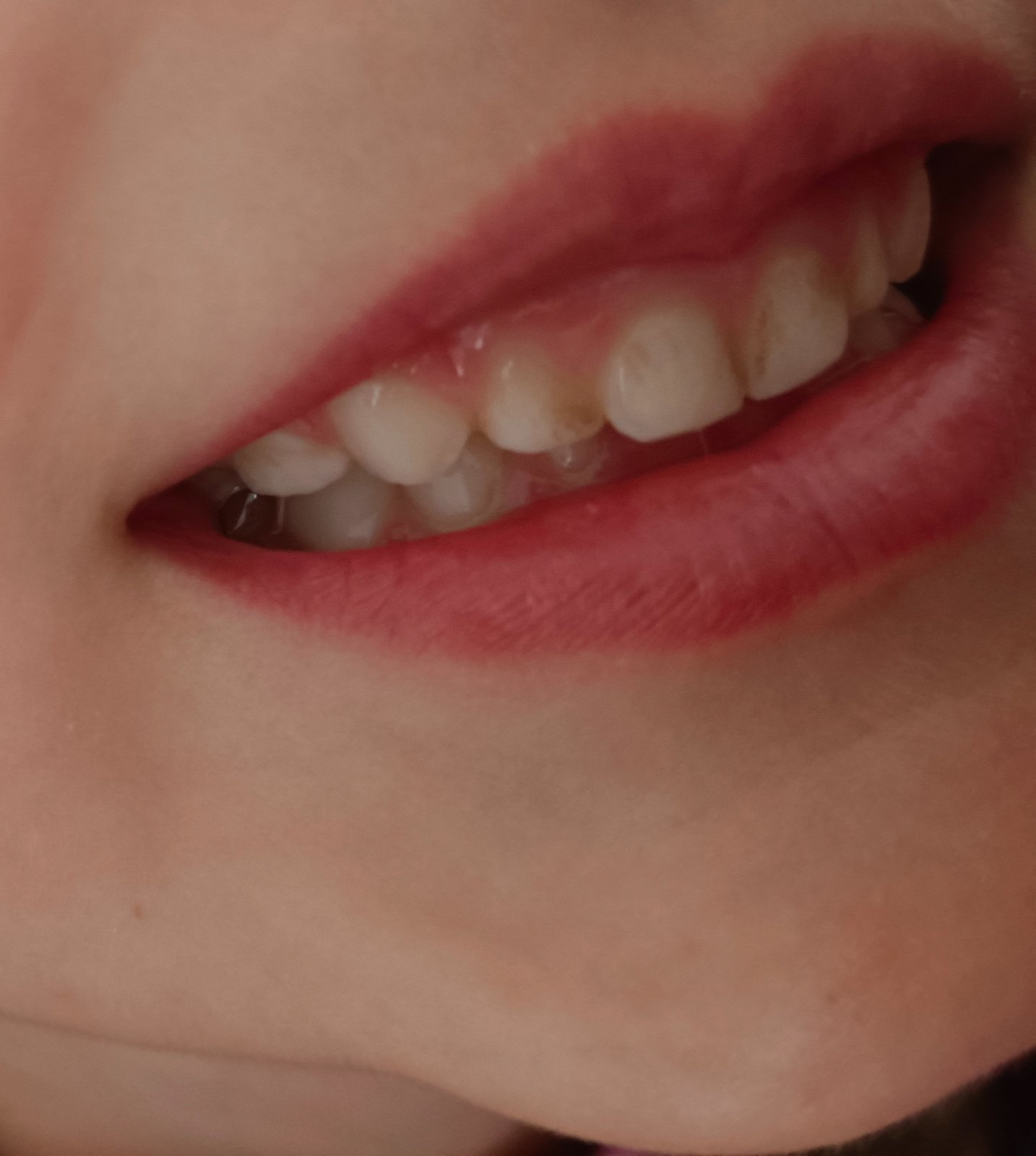 Teraz to mame takto zúbok už je opravený. To čo vidiš to biele to mu odišiel pigment nieje to povlak.