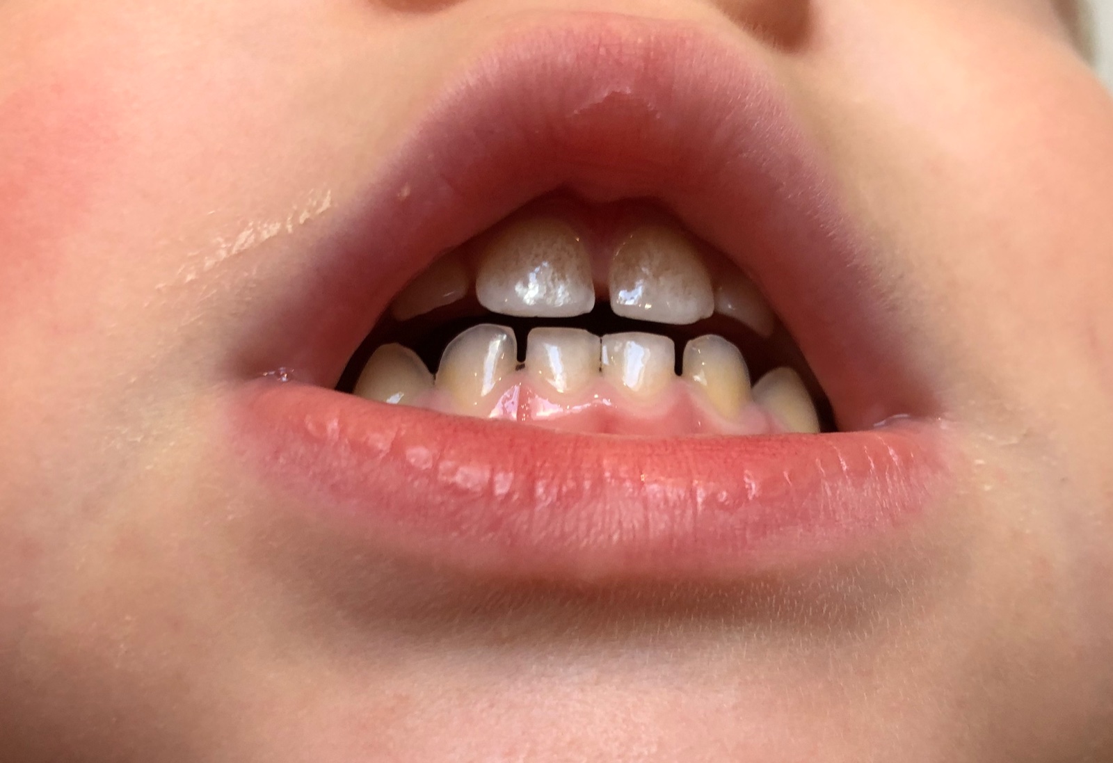 Mojej pomohol GC Tooth Mousse, má ich značne krajšie. Ja od narodenia pre ňu používam pastu bez flóru, takže to nebude z toho zrejme. Inak to už vôbec neriešim, nerobím si z toho hlavu.