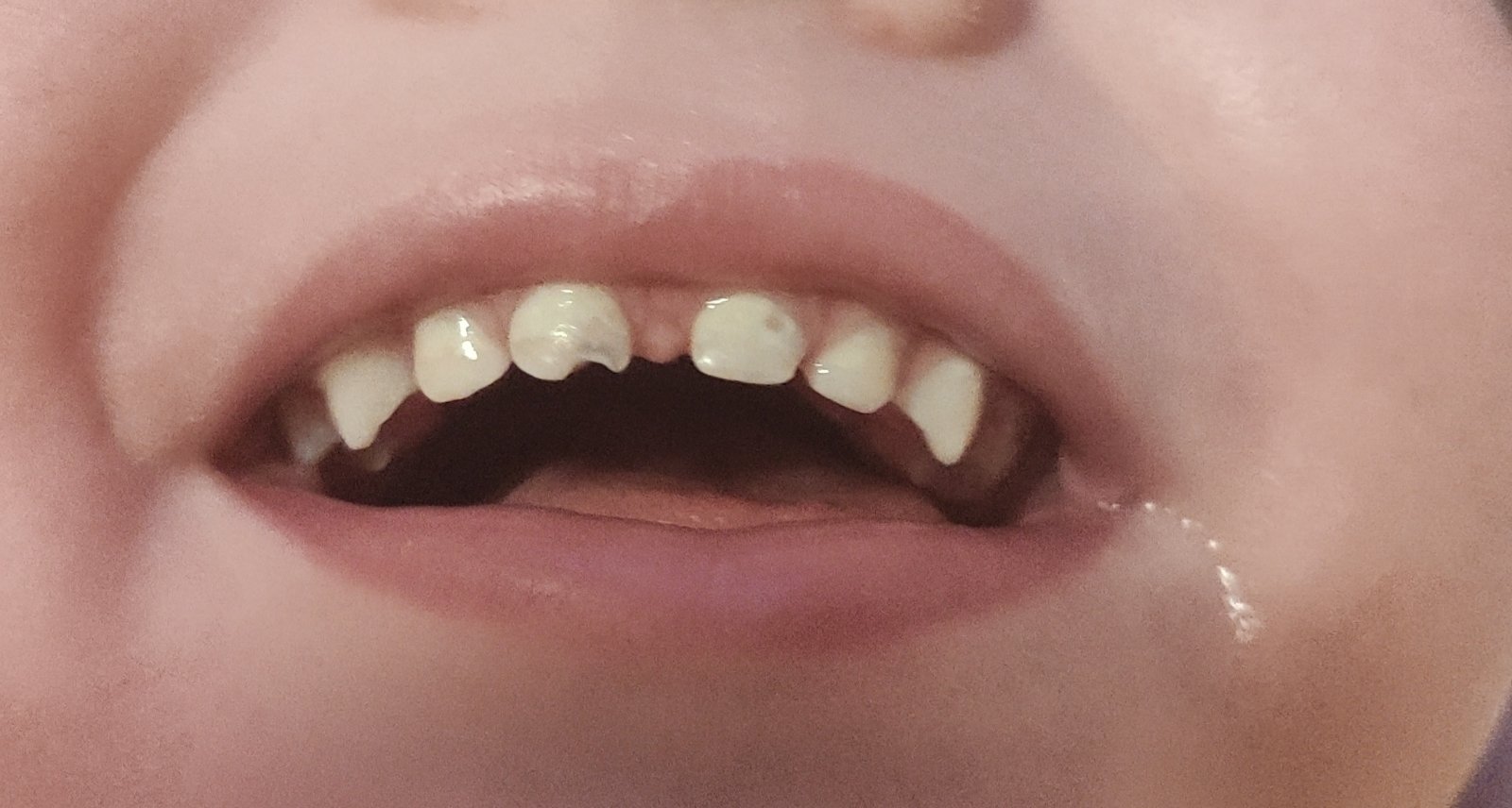 Kaz,kym sa dostanete k zubarovi,odporcuam gel gc tooth mousse,podla skusenosti zubarov vraj dokaze uplne zastavit kaz a je vhodny aj pre male deticky,na rozdiel od elmexu