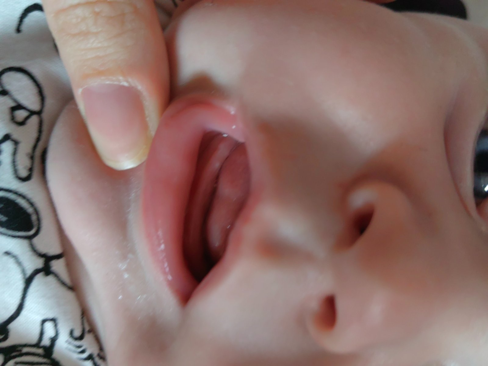 Ahojte, malý je už vyše mesiaca nervózny, slintá, rúčky, keby mohol ta si ich zje. Včera nám nechcel vôbec spať, iba rúčky v ústach na jednom mieste. Potom som si všimla, že tam má niečo biele a zároveň to bolo aj ostré. Viď na foto. Chcem sa opýtať či môže ísť o zúbok, keďže dnes to veľmi nevidím, ale zároveň ma ani malý nechce pustiť na to pozrieť vždy si to zakrýva jazýčkom. Fotka nie je veľmi kvalitná, keďže je uplakany a bráni sa.