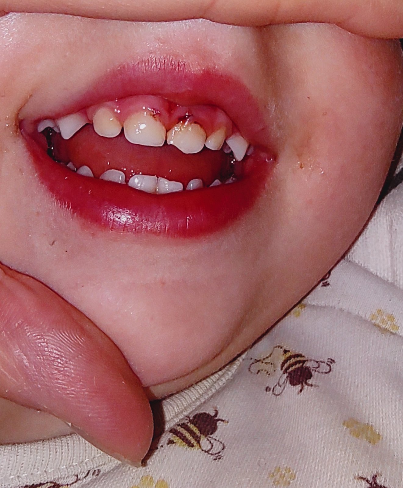 Zlomený predný zub u dvojročného dieťaťa