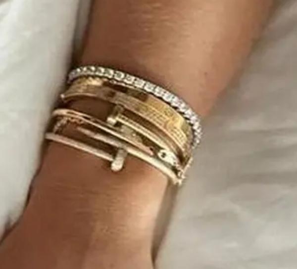 @andreatytler aka bizuteria?????? Na tej ruke, kde ma ten "tennis bracelet" ma dalsie 3 veci od Cartiera - Love naramok (2x rozne prevedenie) a Klinec, na druhej ma alhambra naramok od Van Cleef a rovno 2 rozne verzie.