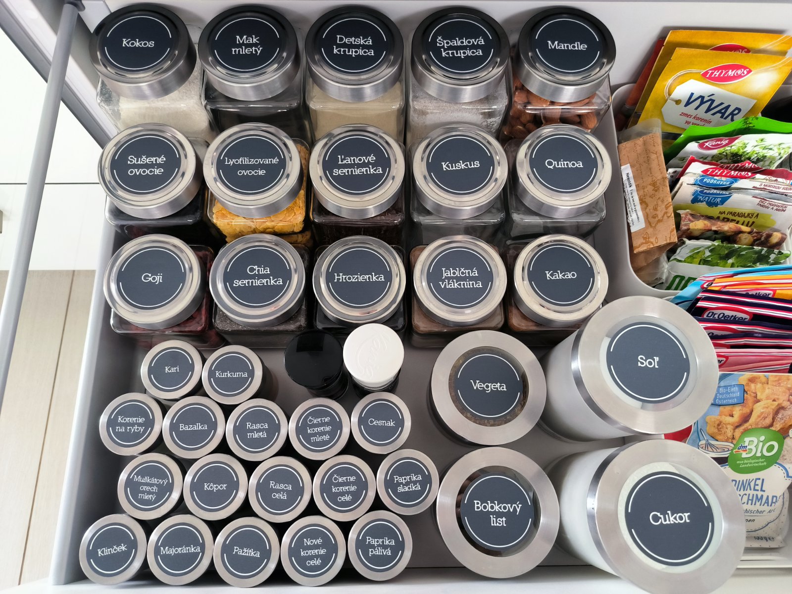 Mala som to v nadobkach na stojane vedla sporaku ale to bolo dobre par mesiacov. Taku papriku som musela doplnat 2x za mesiac a rasca bola este stale poloplna aj po 2 rokoch. A hlavne to bolo hnusne spinave takou lepkavou spinou z vyparov z varenia. Teraz ich mam v takej suflikovej minipolicke na kolieckach vedla sporaku a to je super. Uzavrete ale zaroven hned po ruke a pekne zorganizovane.