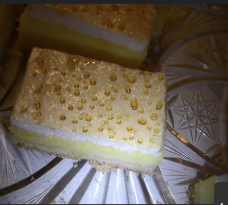To je skaramelizovaný cukor. Vyslahaj bielky s cukrom, natri navrch kolaca a daj piecť