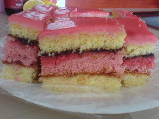 prekrojis 3 pasky..spodny natriet dzemom,stredny poliat sirupom- 1DCL vody, 1dcl cerveneho sirupu,5 lyzic rumu, vrchny plat potrit tiez zdemom a dzemovou stranou polozi na stredny pas. vrch polejeme puncovou polevou. KUPUJEM. dr oetker ta je najlepsia,, kupovala som aj tie lacnejsie vseliake,ale nema to tu spravnu chut.. snad sa podari.. drzim palec..