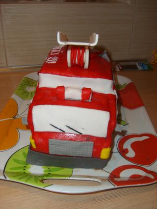 ach ako ste tie palce drzali? ta torta hotova katastrofa,, hlavne ze mame vysuvny rebrik 😀 este ju doladim,, hrozne sa mi vsetko dnes lepii,, este aj potahovka mi nevysla na cele auto,,nechapem.. dufam,ze bude aspon dobra,ked je taka spatna 😀 ale sak maly sa urcite potesi,hlavne ze sa to podoba na hasicske auto