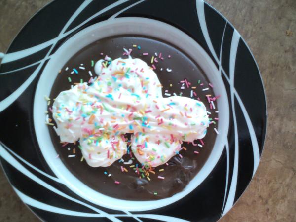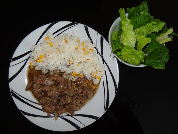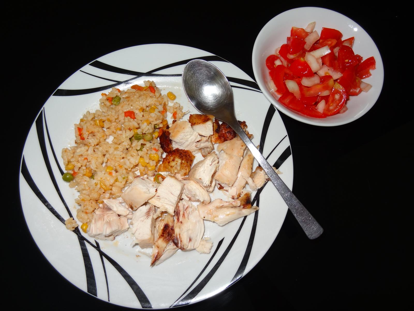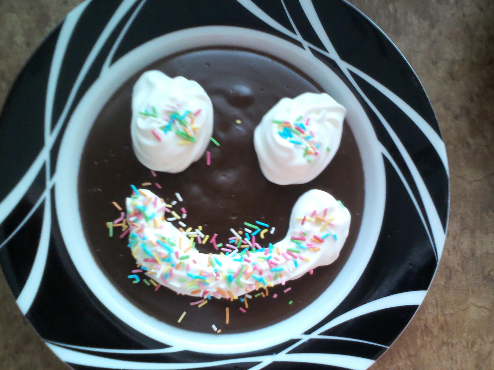U nás dnes k obedu ryža s kukuričkou, kuracia pečienka na šťave a rímsky šalátik s nálevom sladkokyslým (šalát je síce tmavý a hrubý, ale chrumkavý). A hádžem ešte foto spred pár dní, to sme mali pečené kura - nakrájané kuracie prsko so zeleninovou ryžou a k tomu rajčinkovo cibuľkový šalátik a ešte veselá večera - kakaový puding ozdobený podľa priania mojich detí 😉