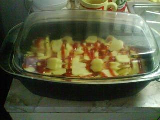 dnes kuraciu bábovku a opekané zemiaky. k tomu kapustovo-cvilový šalátik