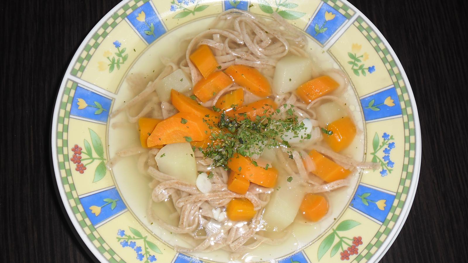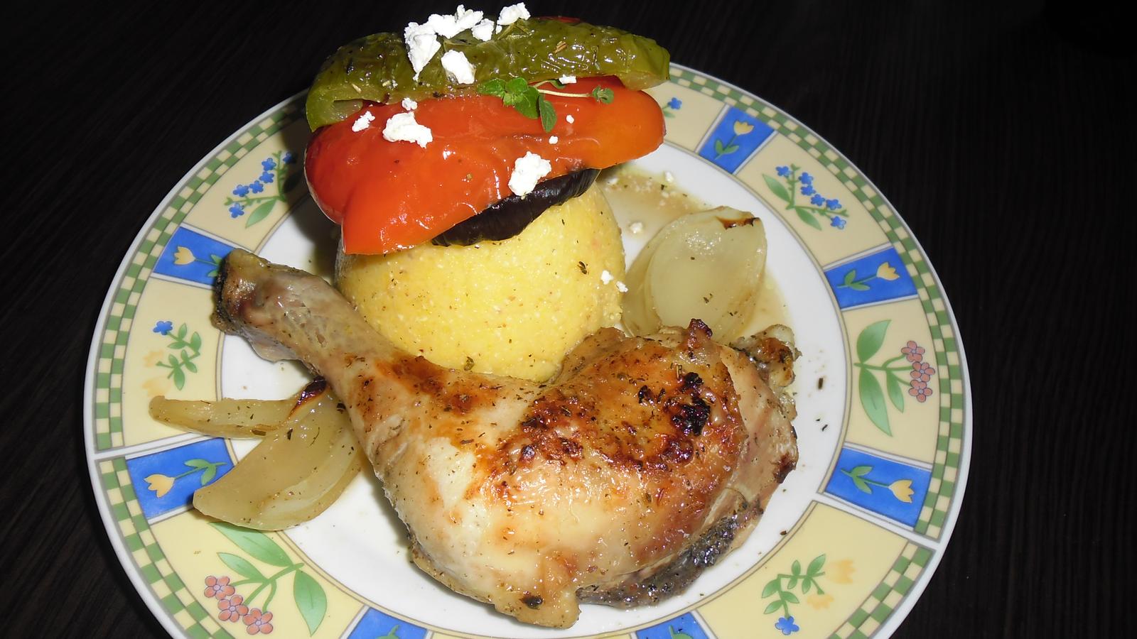 ahojte ja som dnes varila kurací vývar so zeleninkou, špaldové rezance a kuriatko na víne s cibulou, grilovaná zelenina- baklažán, paprika, polenta a feta syr